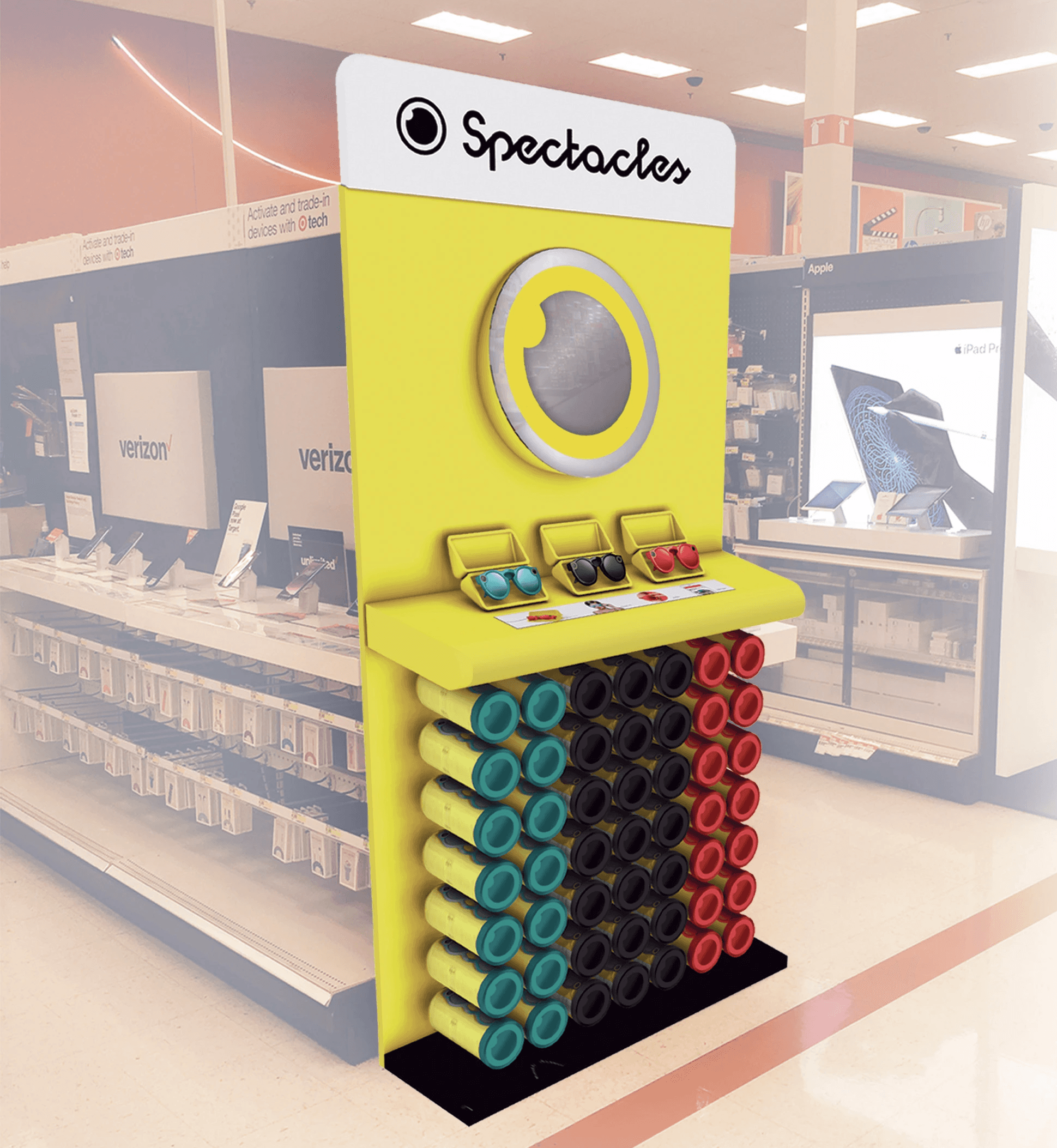 An endcap display introducing a new augmented reality product for Snap Inc.