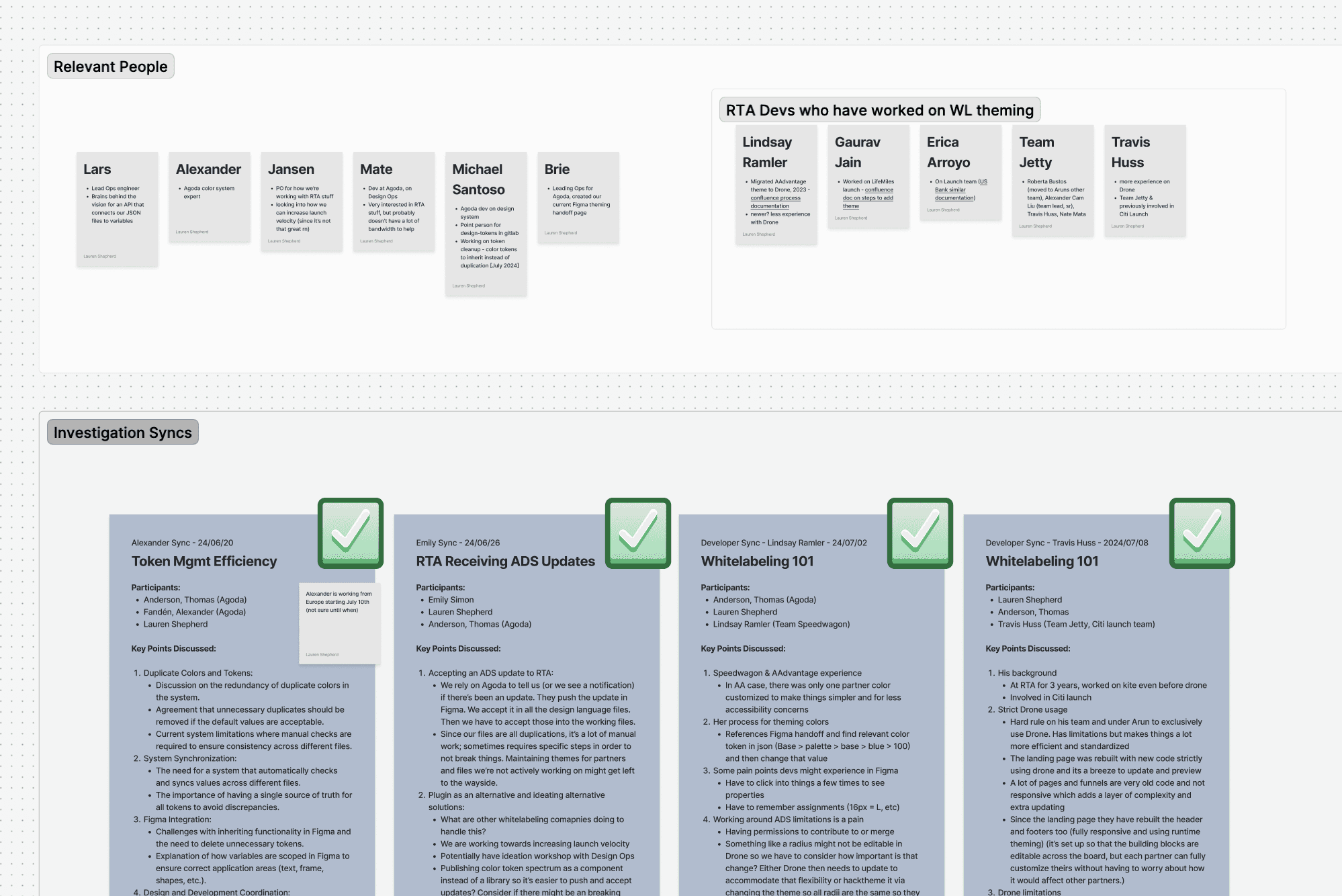 Documentation from a portion of our discovery interviews