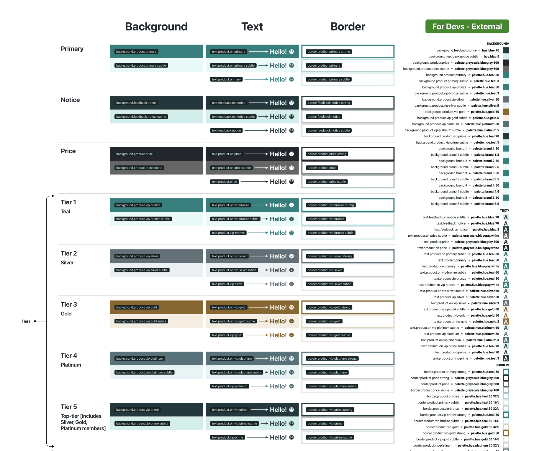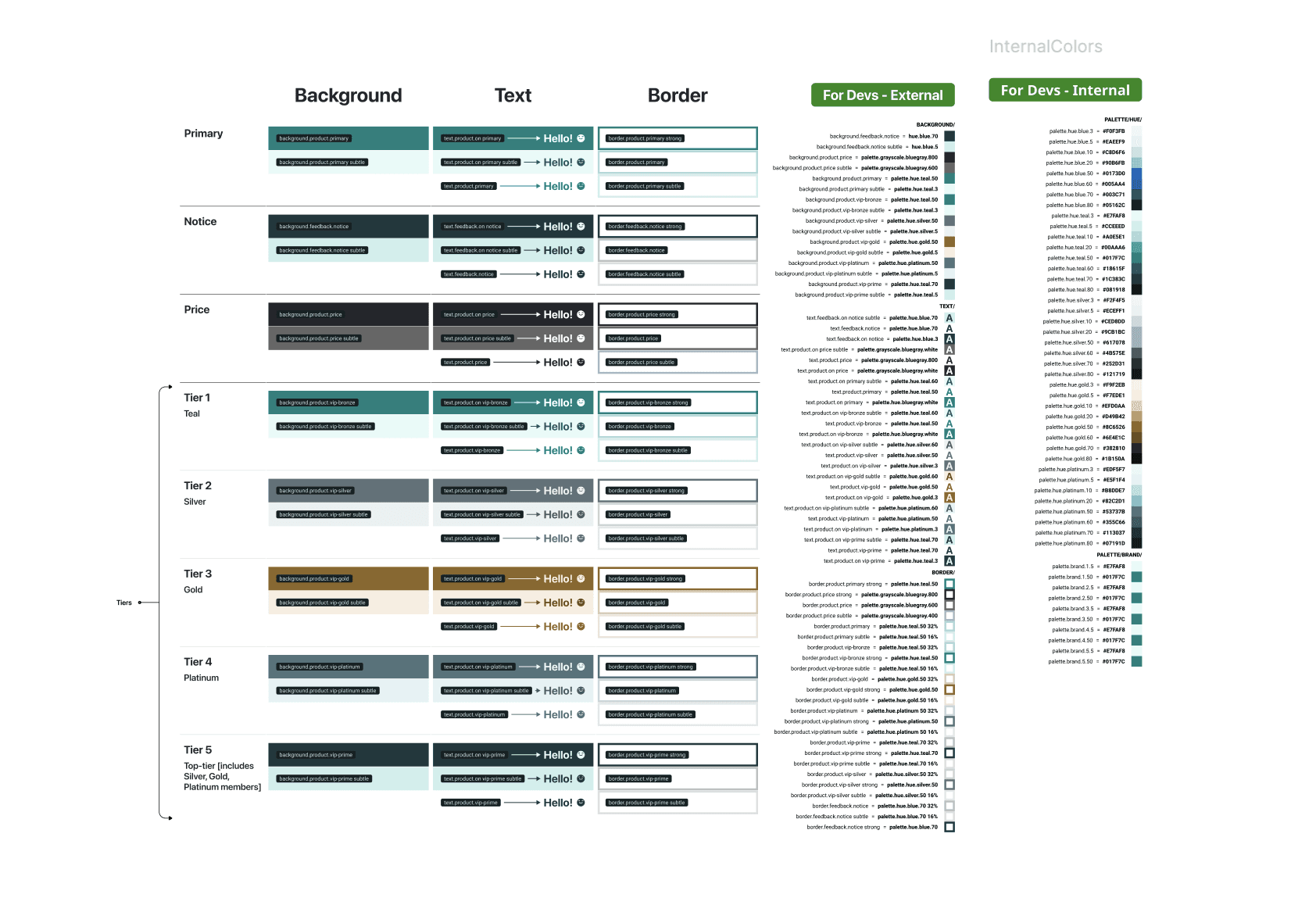 To cut down on manual work when it came to handing off tokens from design to development, I created documentation components that would automatically inherit color variables and would be configurable based on a partner’s unique needs.