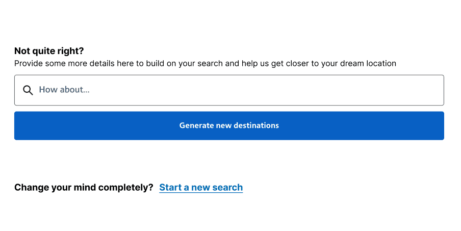 Leaving room for error as the technology and feature would still be new, we made sure to give the user an out by either narrowing their custom search or starting over.
