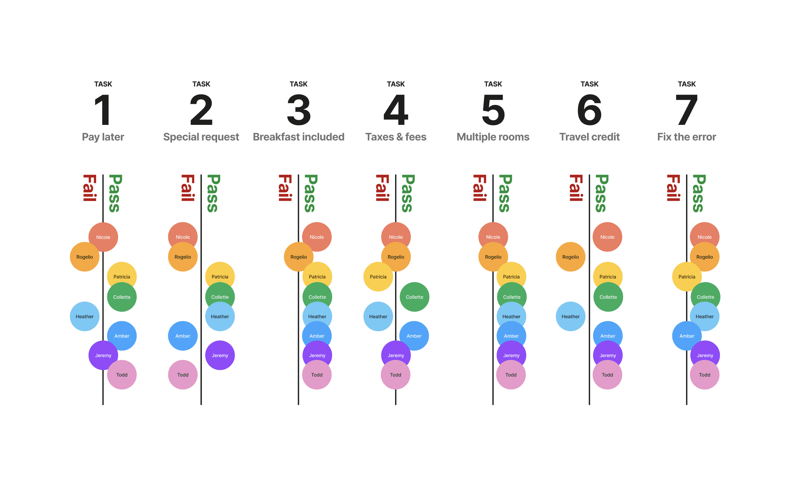 Results from our test's tasks. This showed us where any spots were that may have needed any re-evaluation.