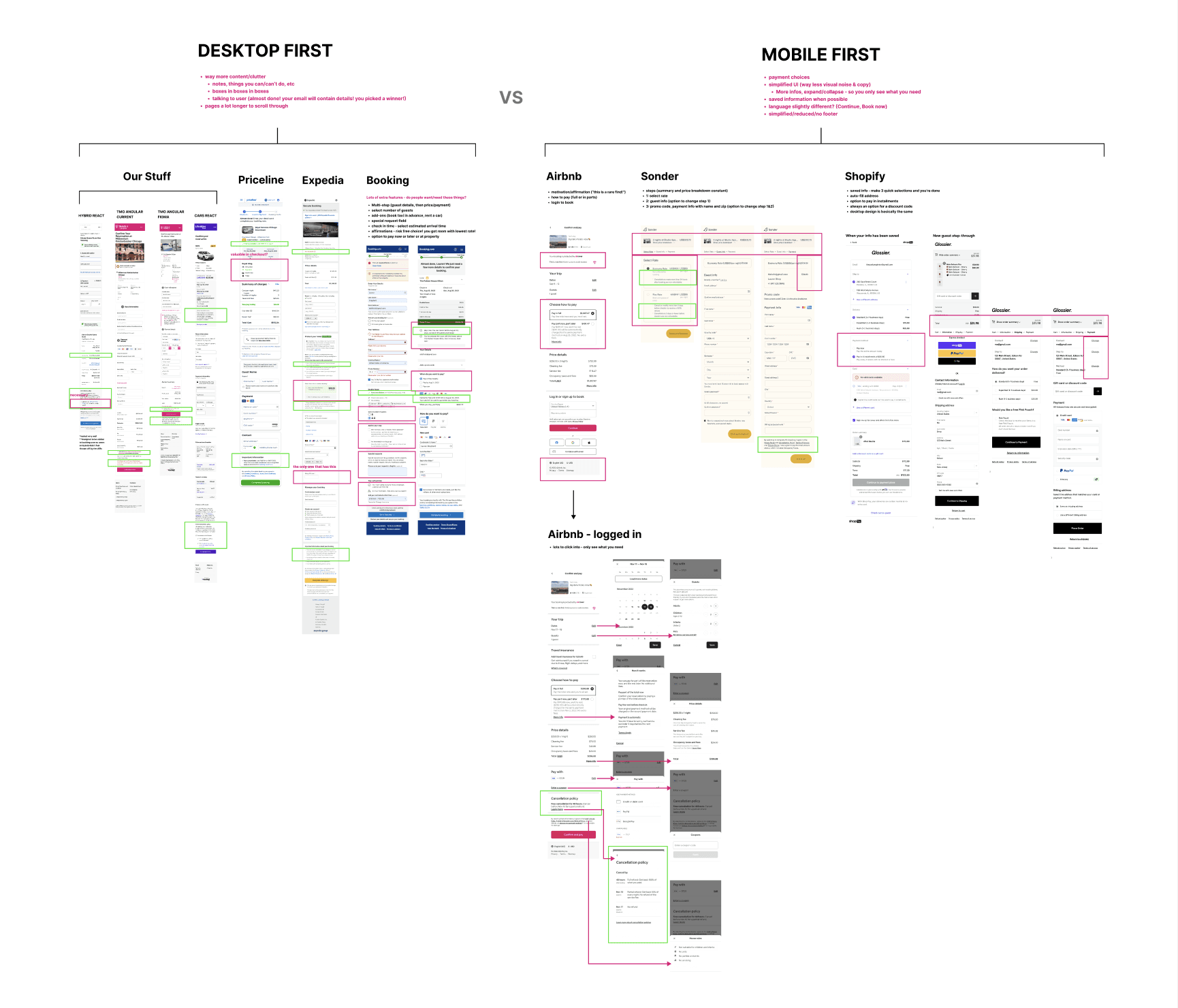 Competitive analysis comparing desktop-first vs mobile-first UIs.