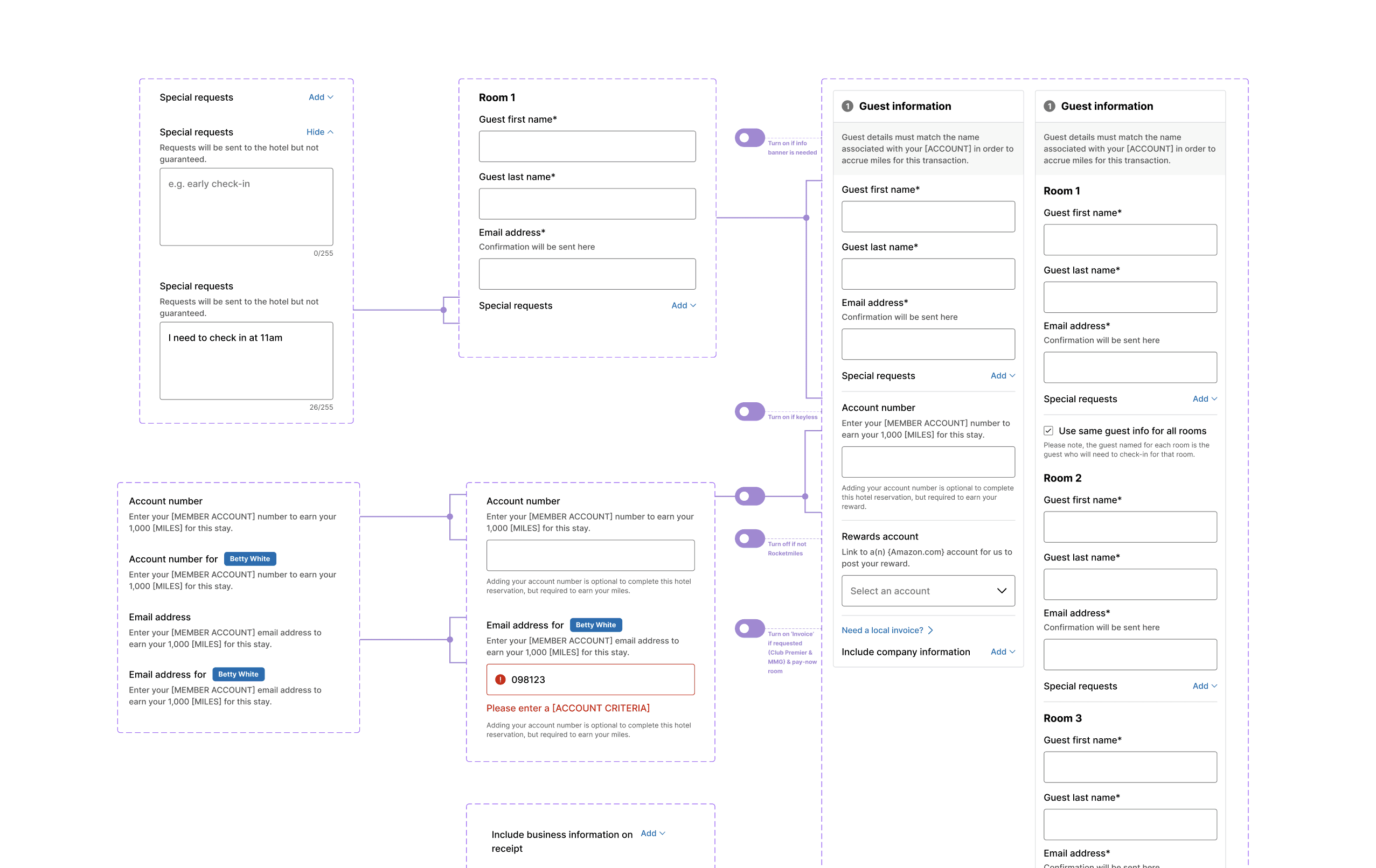 #1 priority features for design: guest information inputs, accommodation details, price breakdown, and payment details.