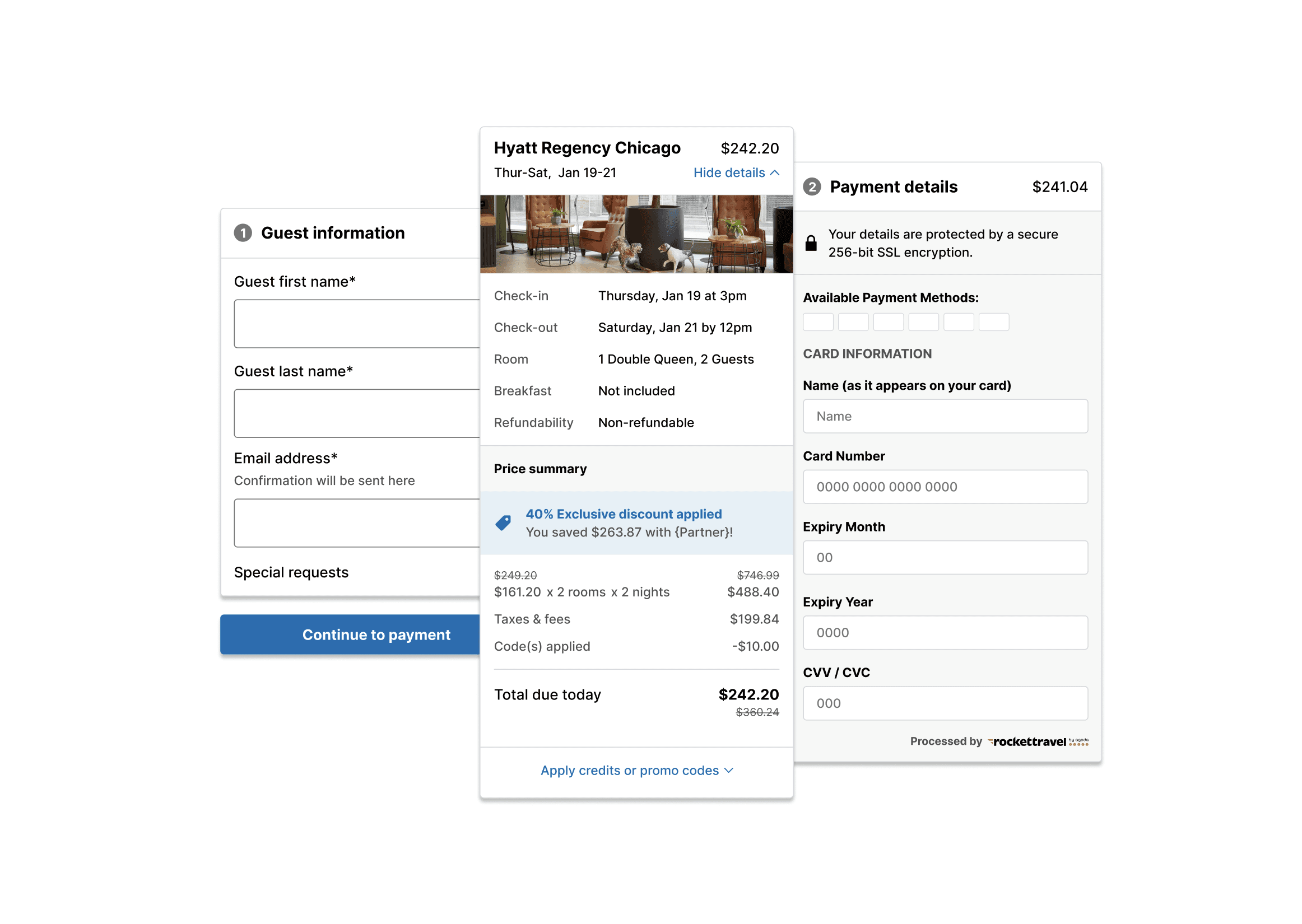 This checkout was a white label, hotel booking platform branded for various global partners, accounting for each of their unique feature needs